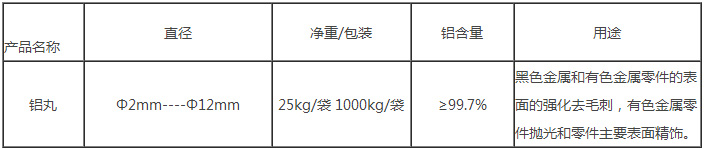 鋁丸又名鋁砂、鋁顆粒,主要應(yīng)用于鋁、鋅或薄壁工件的表面噴拋處理,也可與不銹鋼丸按一定比例混合使用,對(duì)工件表面具有明顯的增白效果。